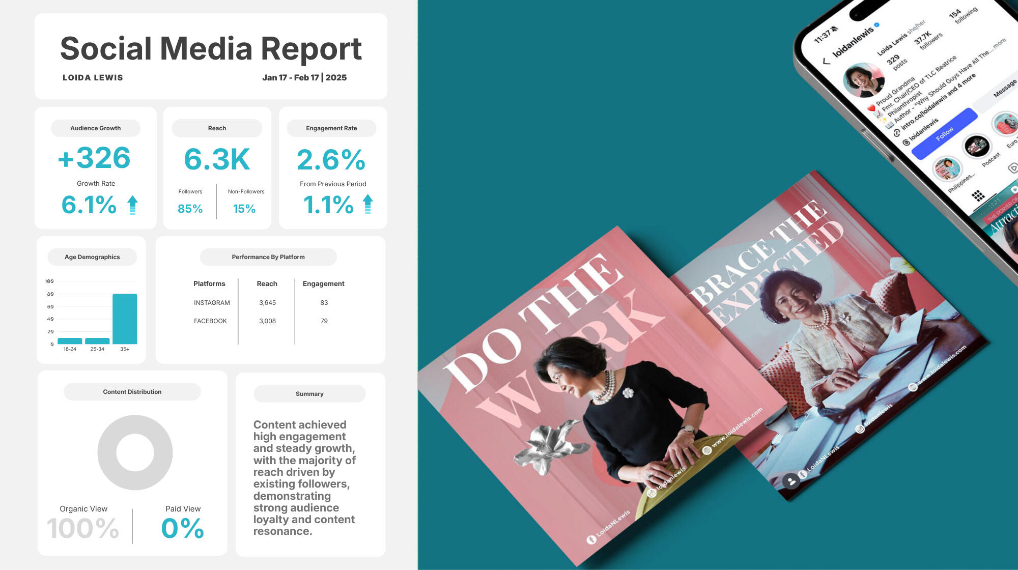 Loida Lewis is a businesswoman, lawyer, and philanthropist; content highlighted leadership, legacy, and impact through strategic social media storytelling and cohesive visual identity.